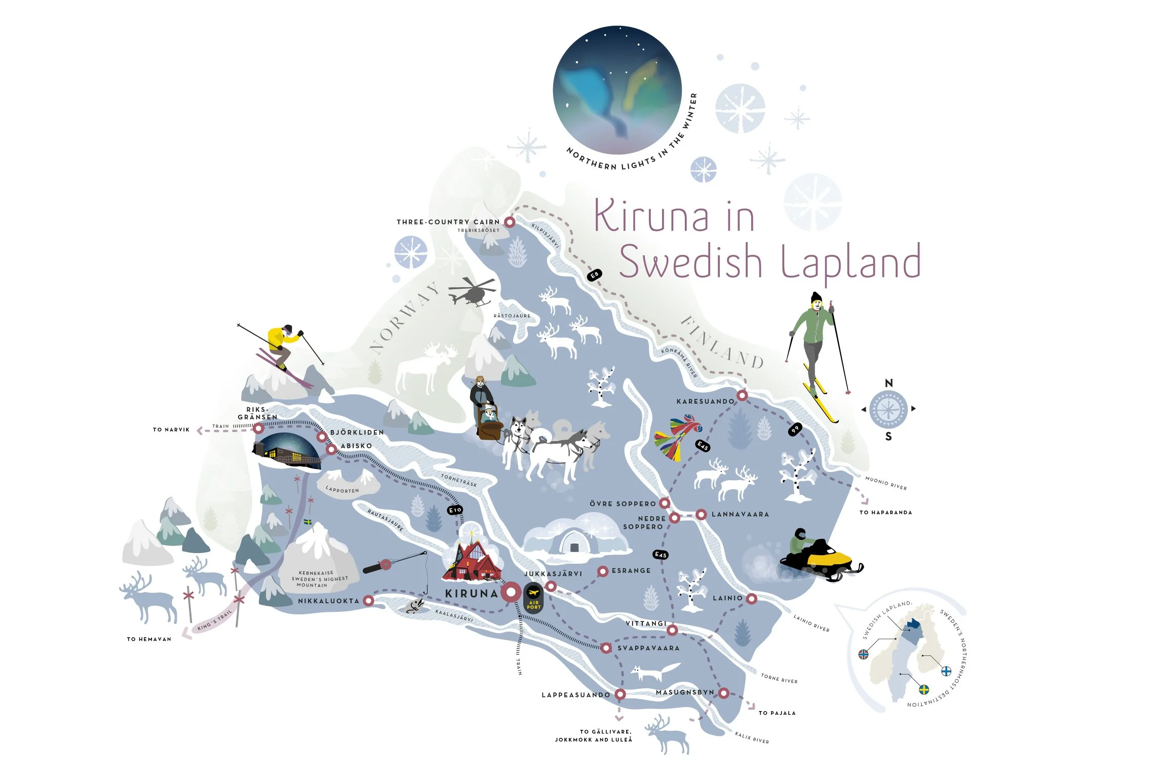 Staden Kiruna, norrskensmetropolen Abisko och skidåkarparadiset Riksgränsen känner många till men här tar vi dig med till den nordöstra landsbygden i Kiruna kommun!